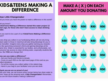-Every water droplet represents R50. You need to cross off one droplet for every R50. 00 donated.